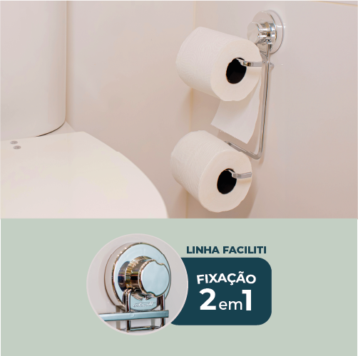 Com a Papeleira Dupla Faciliti com Ventosa, você tem mais praticidade e otimização de espaço, em seu lavabo. Com ela você dispensa uso de ferramentas evitando furos e sem sujeira.