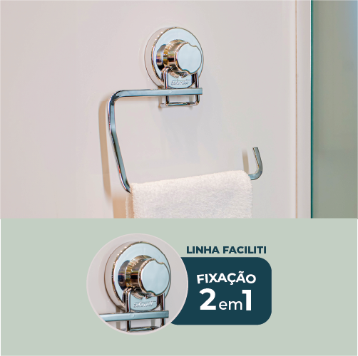 Com o Toalheiro Rosto Faciliti com Ventosa você consegue otimizar espaço e organiza o banheiro. Com ele você dispensa o uso de ferramentas evitando furos e sujeira.